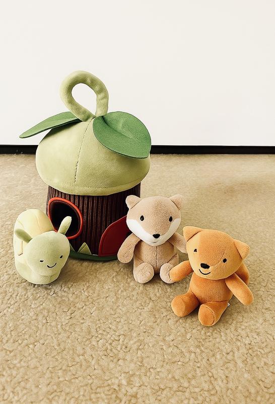 Gifted by Lambsandivy . it’s absolutely adorable! The set comes with a soft plush “treehouse” that opens up to reveal a few tiny forest friends inside — a bear, a turtle, and a little squirrel. Each plush toy is super soft, perfectly sized for small hands, and has such a sweet, gentle look that’s perfect for babies or toddlers. The quality is great — everything feels well made and durable, but still cuddly and safe. I love that the treehouse doubles as a cute storage pouch, making cleanup easy and fun for little ones. It makes a wonderful baby shower gift, nursery decoration, or playtime set. My little one loves taking the animals out and putting them back in over and over again. Definitely recommend this set for anyone looking for a cozy, charming plush toy collection!