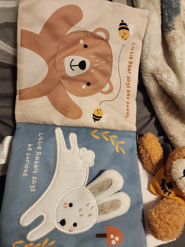 My little girl loves this toy, I show it to her in her wake windows to help her focus her eyes in one spot, we also read it to her before bedtime and it looks so cute sitting in her room. It’s made very well and one of my go to soft toys for her.