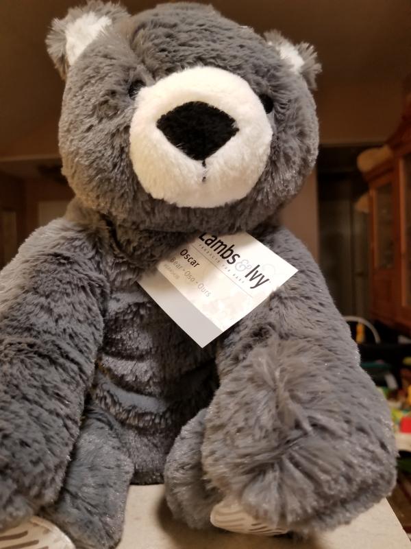 I absolutely love this little teddy. Mainly because he's the color grey and my son's name is Greyson. We call him Lil Grey. My son snuggles with him all of the time and gives him hugs. <3