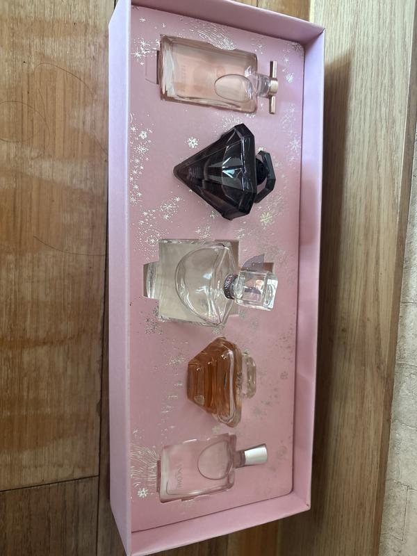 I ordered this in order to give it as a gift. The La Vie Est Belle was broken open, missing the lid and completely empty. The perfume fumes ruined the entire packaging. I returned this and after reading other reviews I can see my order isn't the only one this has happened with. Did not reorder...and do not recommend it due to ongoing problems.