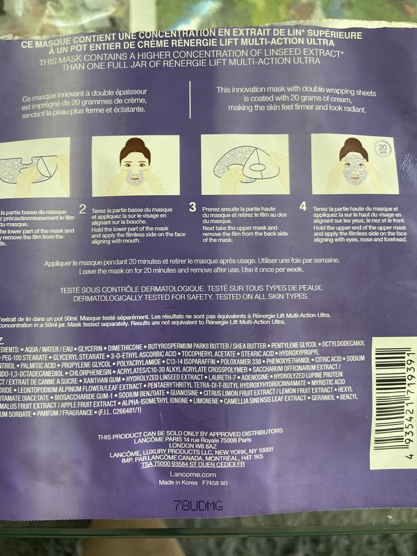This mask is wonderful. My face feels pampered and appreciated. I normally don’t spend much time or money ‘pampering’ myself but if I did I’d ask Lancôme to make this in a full body size!