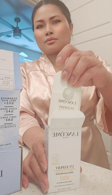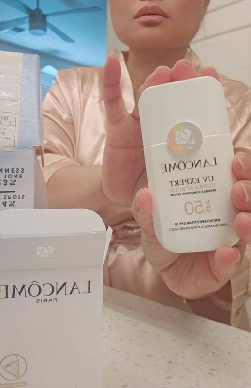 Lancome UV Expert Supra Screen Invisible Serum Sunscreen SPF 50+ I am highly impressed with this sunscreen. This is the first sunscreen product that has exceeded my expectations. In addition to its SPF 50+ protection, it effectively moisturizes my dry skin, leaving it feeling smoother and hydrated. Unlike other sunscreens I have used, this product is fragrance-free. I particularly appreciate its finish, as it eliminates the need for a separate primer. I consider this product to be a worthwhile investment and I intend to repurchase it.