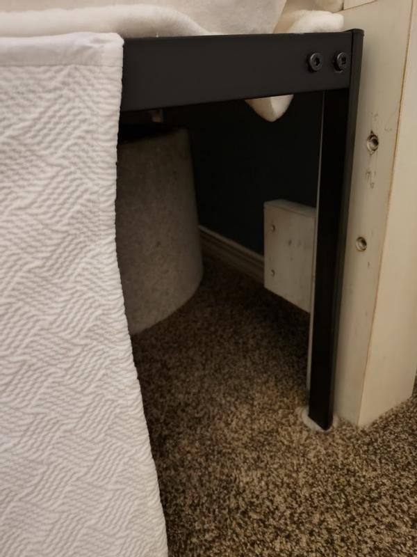 It hung on the floor as it was an inch or two longer. We just put blocks under to raise the bed up & it worked perfect. Very nicely made.