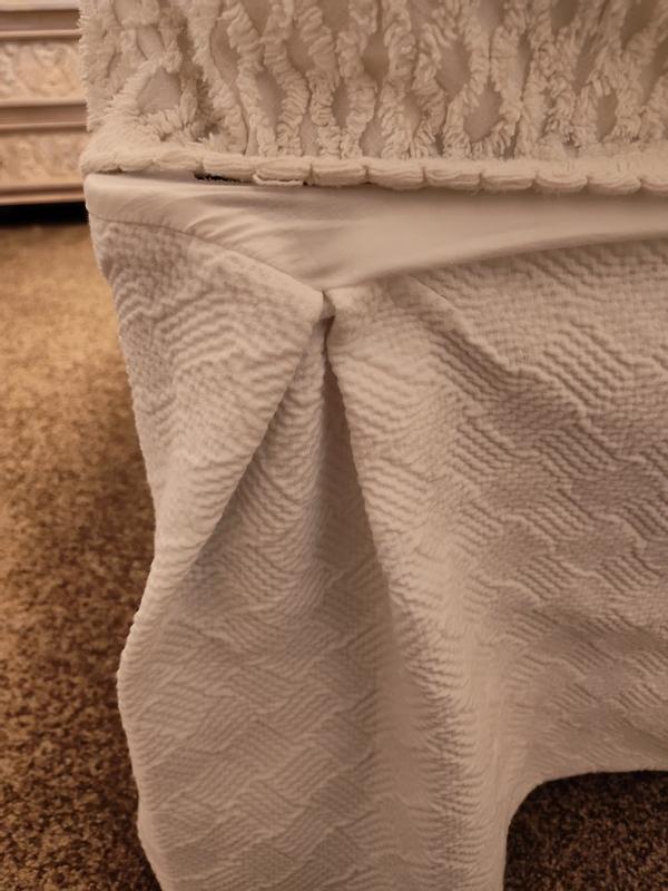 This matelasse bedskirt is beautiful! I pressed it lightly, and it hangs very well! The basketweave is lovely but it is not really obvious.
