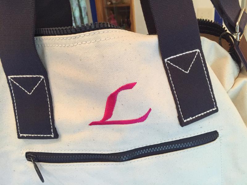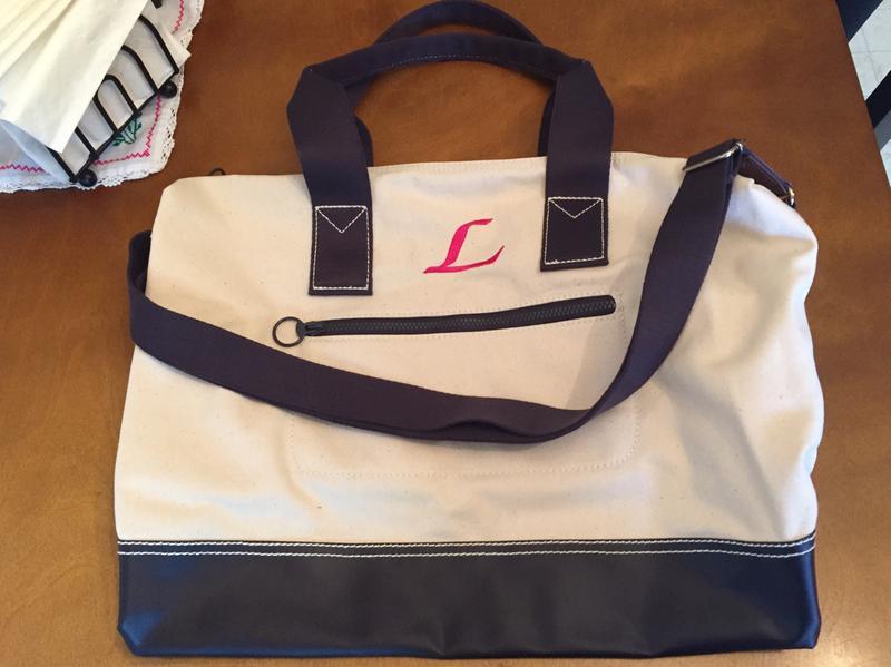 Very happy with this gift. Bought it for my wife as a travel bag and she loves it. Great looking, big, and fits the luggage handle perfectly. She loves the big initial on it too. :) we took it to Italy and it was a huge help!