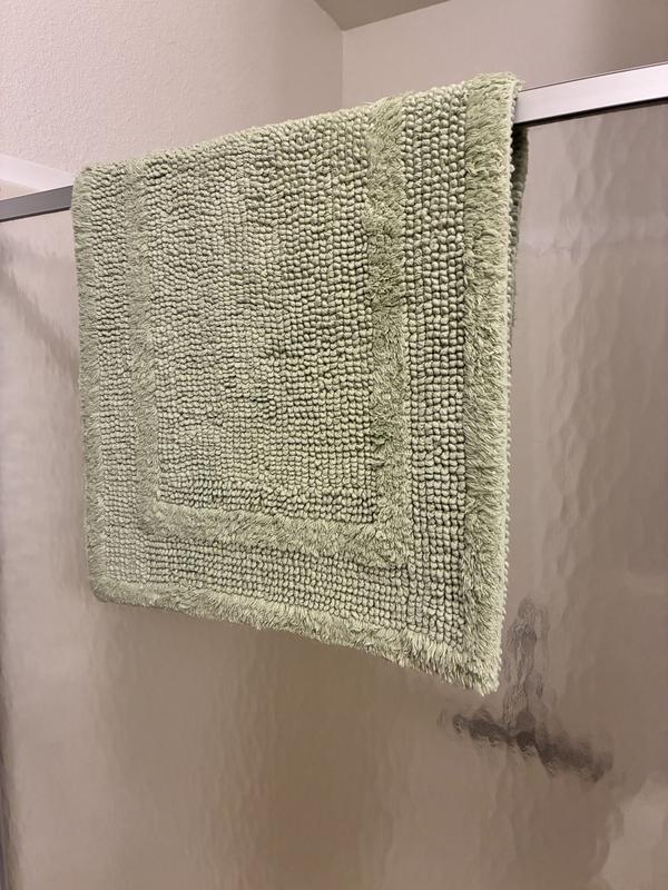 These reversible bath mats are incredibly thick, soft, and fluffy. They feel great on your feet. Alas, they cannot be cleaned in my front loading washer. I’m sorry I bought two before discovering this fact. They are so heavy when wet that the washer cannot spin the water out. I will have to take them to a commercial laundromat.