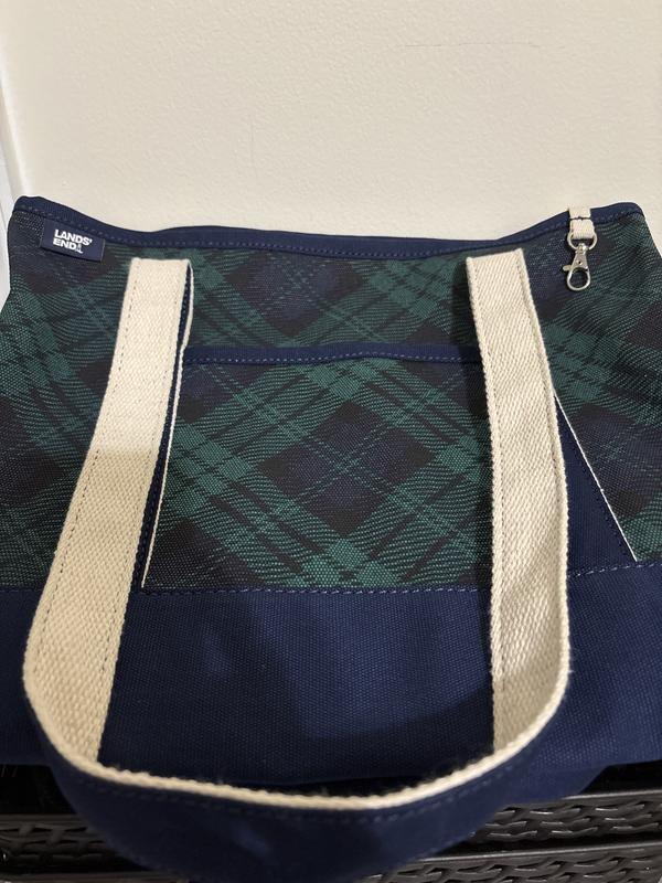 The outside pocket is tearing away from the strap. I have had this medium canvas tote for 6 months and used it 3 times a week to go to the pool. I only used the outside pocket for my phone and locker lock. The rest of the bag is fine. I am seriously disappointed that Lands' End will not replace a clearly defective bag.
