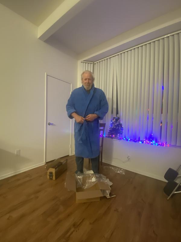 bought for Christmas gift for my fiance he loved it it looked beautiful when I took it out of the package he tried it on it fit perfectly. I washed it and it looked like it had been worn for 10 years. threads hanging out all over like it was snagged I washed it alone so it wasn't put in with anything that could snag it. his old robe he had had for over 10 years and it looked better than this one the only reason I got him a new one was because he wanted a dark one instead of a white one