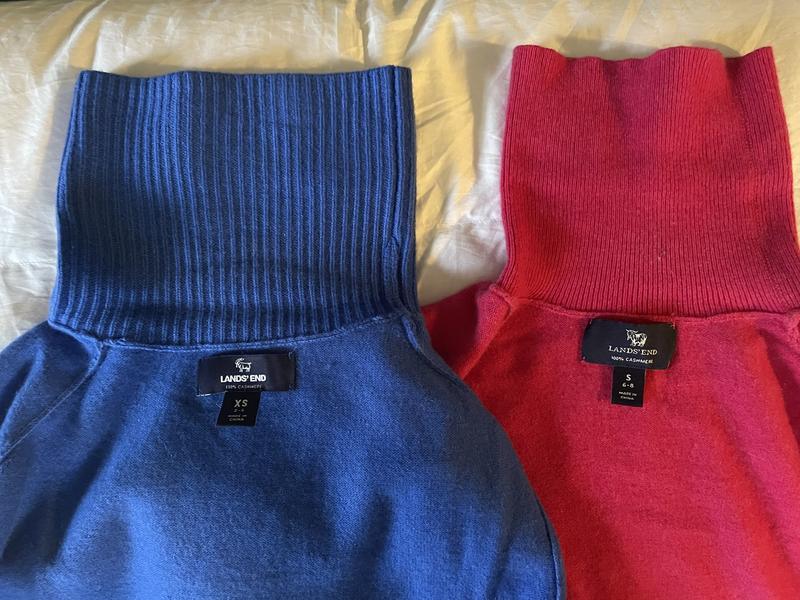 I love the green color of this donegal turtleneck cashmere sweater. The petite size is perfect and the style is just what I wanted, and especially the color. It’s a wonderful green. Unfortunately I had to return as the neck area of the sweater was very irritating. I have a few of the Lands End crew neck cashmere sweaters and will purchase that style instead. No irritation problems with that style for me.