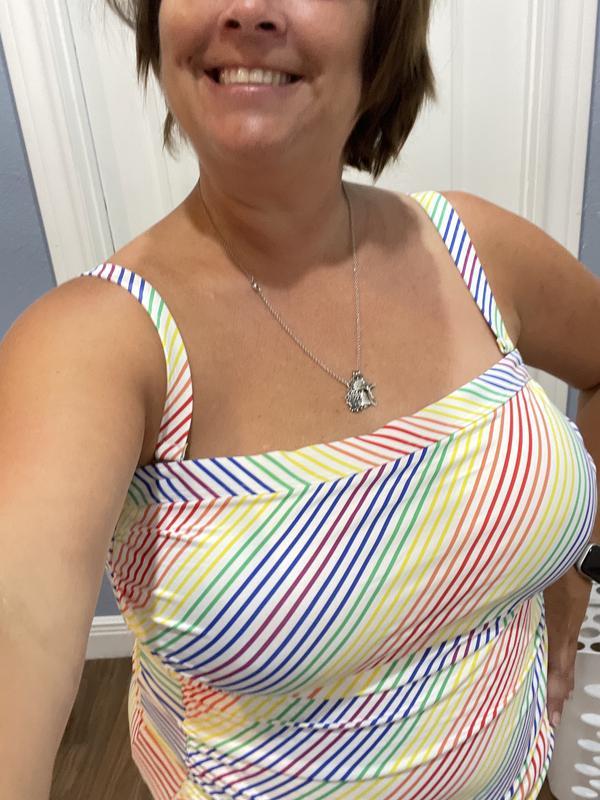 Love this swimsuit!!! I bought it in a size 16W and it fits me like a glove. It is extremely flattering. This is the first time I bought a tankini and think it is the best swim wear I have purchased in a long time