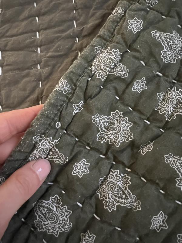 I wanted to love this beautiful quilt. Sizing was perfect. The white stitching however after the first washing is coming undone.