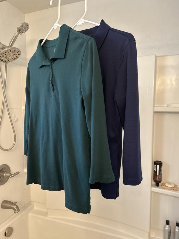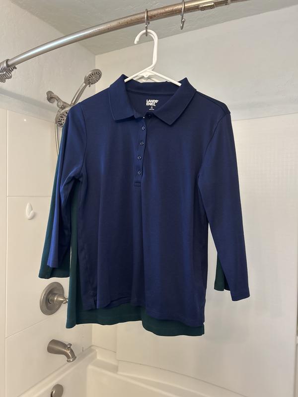 I ordered pink and blue Lands End Women’s 3/4 Sleeve Supima Cotton Polo Shirts, because I liked very much what I saw in the picture - design, colors, buttons, and overall looks. When I received my order, I liked these shirts even better – they were pleasant to touch, because cotton fabric is very soft and even slightly silky. But then it turned out, that blue shirt is the whole inch wider than pink shirt, despite the fact that both of them have the same XL size. The seams that connect the front and back of the shirt are not straight, especially on the shoulders. When I tried these shirts on, the shoulders were sticking out. And the pink shirt turned out to be narrow. To my great disappointment I had to return them back. It’s such a pity – great design, but bad tailoring.
