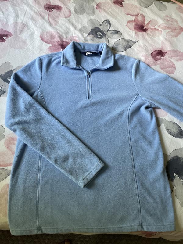 Disappointed with shifts in Lands End quality lately. Decent fleece for the price but the sleeves are so short grrr…closer to a ¾ sleeve and material feels like a lower end fleece.