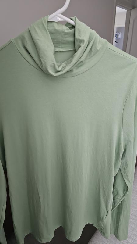 Love the fit, weight and color (Dijon) of this pullover. Particularly like that it’s a little longer-fits nicely over the hips so works well with leggings. The princess seams are also flattering giving it a finished look. I plan to purchase a couple more of these!