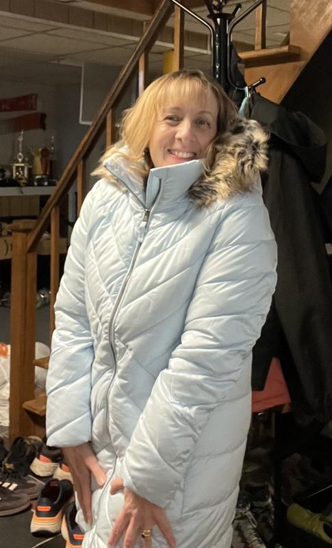 Finally, a wonderful warm coat! I returned 3 coats this year until I finally found this one. My warmest coat finally needed replacement after 12 years! I specifically did not want anything with down, but wanted warmth and a great fit. I am 5’1” but not really a true petite. The size S fits perfectly. The ice blue color is gorgeous and the hood is so warm I didn’t need a hat today in 20 degree weather. The inside fleece is soft and comfy. I would not wear a really thick sweater with this coat since it would make the arms a little tight- but with a thinner sweater it’s perfect. I love it!