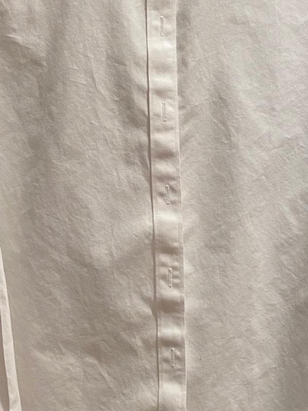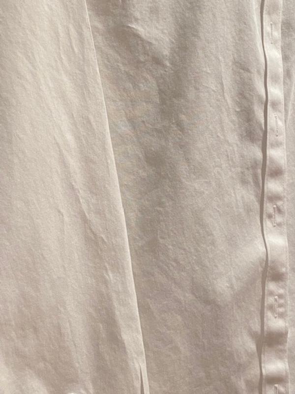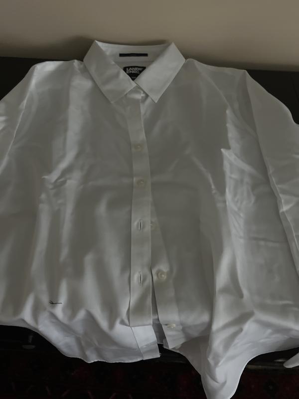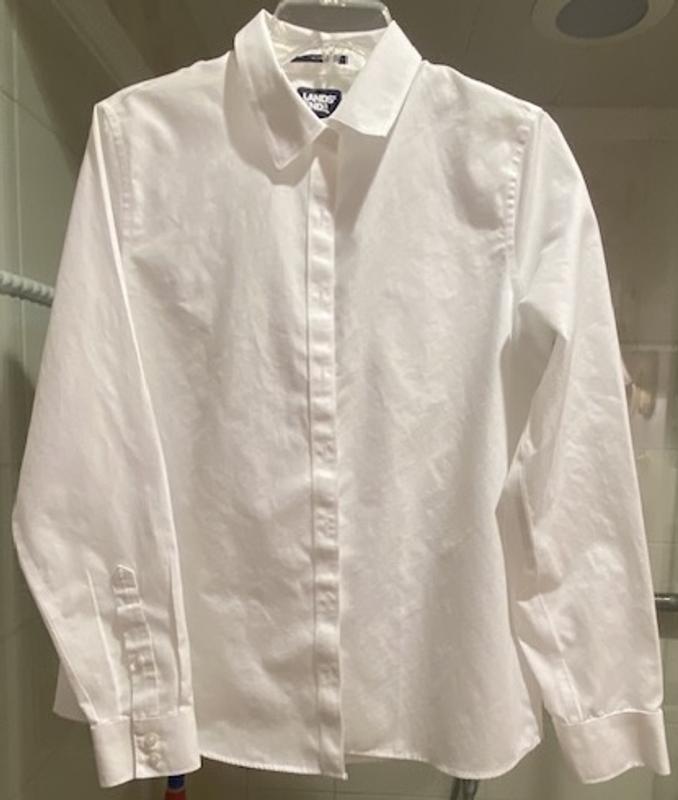 Classic white shirt with the advantage of NO IRON. Fits perfectly and has tucks in the back so when tucked into pants it does bunch up.
