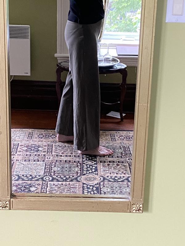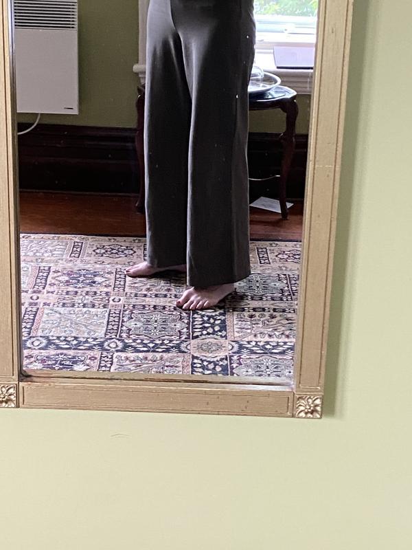 Great pants! I’m 5’4” with longer legs. The regular (32”) length charcoal pants were perfect for me but I needed to hem the black regular (32”) pants up about an inch. I usually wear them with a 1-1/2” heal shoe. Both pairs are definitely high waisted. I’d prefer a mid-rise but I can deal with the high-rise because it’s the wide leg that’s the most important to me as I have lymphedema swelling in my lower legs and these pants don’t cling to my calves. The quality is very good. Will order these again. Wish they came in an olive green too.
