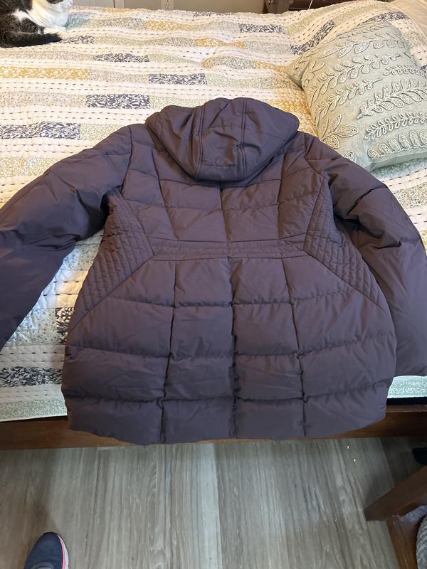 I bought a women's quilted stretch down coat in January to wear as a winter car coat. It's very comfortable and warm, and easy to zipper. It also has a storm front that snaps shut. It was on sale, at over 50% off the original price.