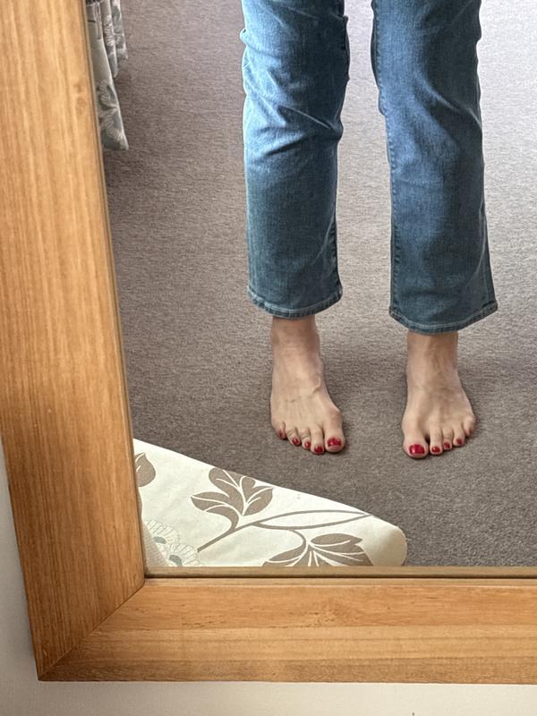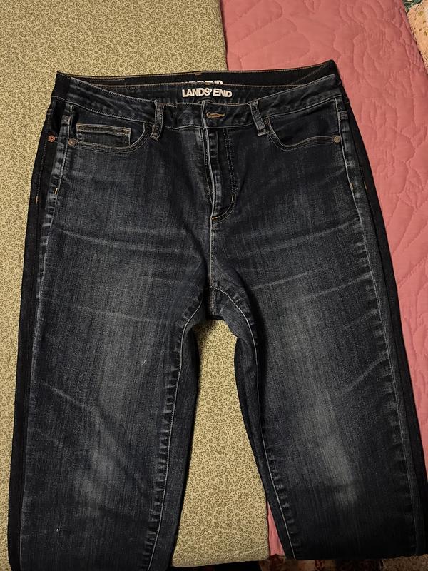I settled for these after trying 5 different pairs I have no idea why the hems flare slightly it’s very unflattering and doesn’t enhance the overall look I like the silver studs and zip and the pale stitching hence my consistent ordering but overall they are not up to landsend standard so I won’t be ordering anymore
