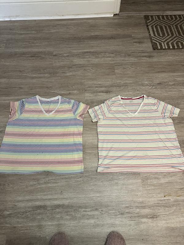 I ordered 3 tops, and this one had a problem with the hem in the front. Fabric was twisted in the hem and won’t lay flat. It also fit tighter than the other two.