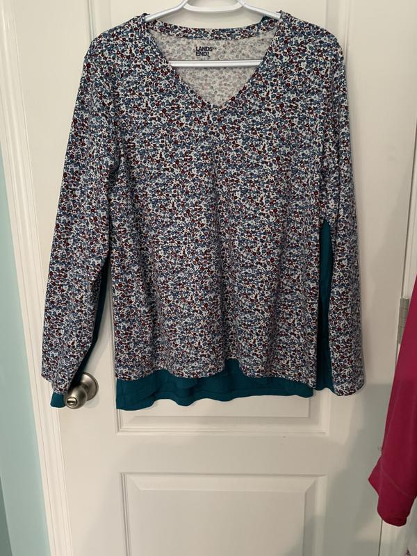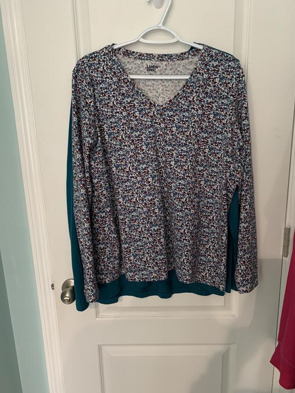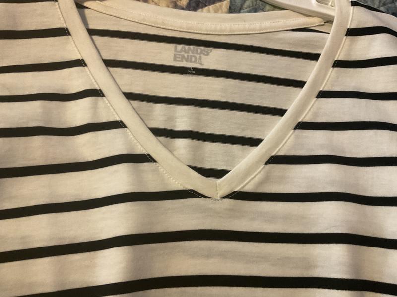 I prefer V neck tops which are increasingly difficult to find. Lovely soft primer cotton which I know from nighties washes well.