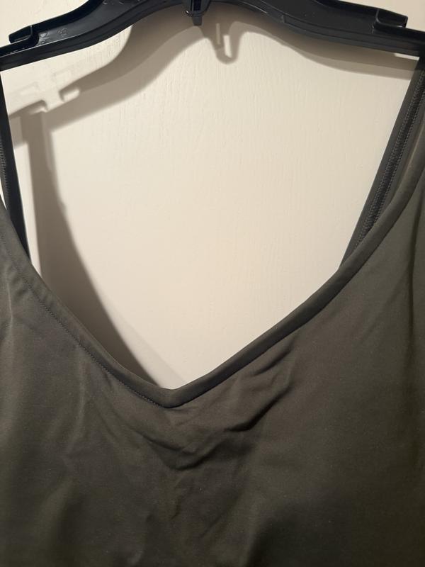 the only problem I have with this top is that the support foam pads in the bra don't stay in place and there is not even a slit to get into to move them back into position. otherwise I love it.