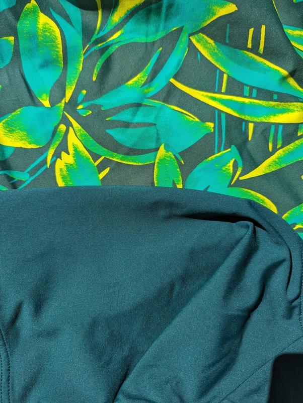 this will "do". i go through suits swiftly due to daily water aerobics classes - buying various tops and bottoms for mix and match. this one, however, had odd pads in the bra that slide and lumped around - then i saw an opening in the seam (intentional) and just took them out and tossed them ... MUCH better. WISH the straps could be adjusted even further. i have to use a shoe string to tie the top tighter so i don't have a wardrobe malfunction ... still, pretty and "will do". fades too swiftly ... sigh - however, fun color/design!