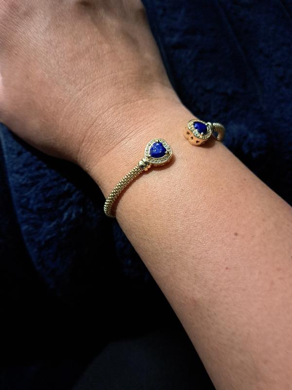 Lapis & White Topaz (1/3 ct. t.w.) Heart Halo Cuff Bracelet in 14k Gold-Plated Sterling Silver (Also available in Onyx, Amethyst, Swiss Blue Topaz or Turquoise.)