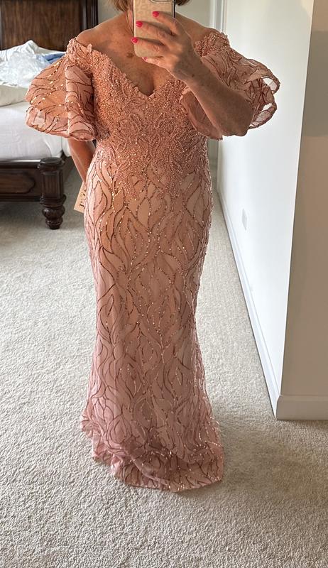 Women's Off shoulder mermaid beaded gown with tiered sleeves