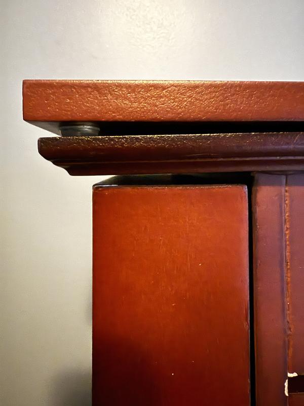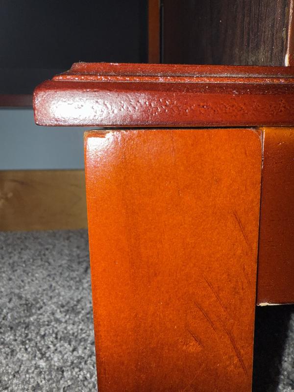 This product has to be the worst quality I have ever seen. Three of the drawers were broken on delivery and probably would not have lasted paste the first week of use due to the poor quality of materials. The stain is uneven and sprayed on so you can see were the handles for the drawers were during staining. Fit and finish is terrible. Gaps everywhere. Dust was everywhere. apparently there is no quality control. Do not buy from this manufacturer.