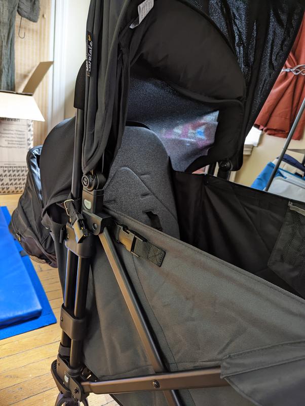 WE LOVE THIS WAGON!!! Spacious and super comfy my one-year-old loves being in it. I love how easy it is to clean out the crumbs with the zippered floor. It folds up flat and fits in my car trunk with no issues. I love it comes with a bug net. It pushes really well over all surfaces. There are only two cons. One is no peeking flap when you have the shades in, the other is the foot panel to stretch their legs when sitting has to sit on the seat and you have to remove the buckles to secure it down and still be able to use the seat belt if you have a second child and again to close it. Still not a reason I wouldn't highly recommend this wagon. We did an open box and it was brand new!!