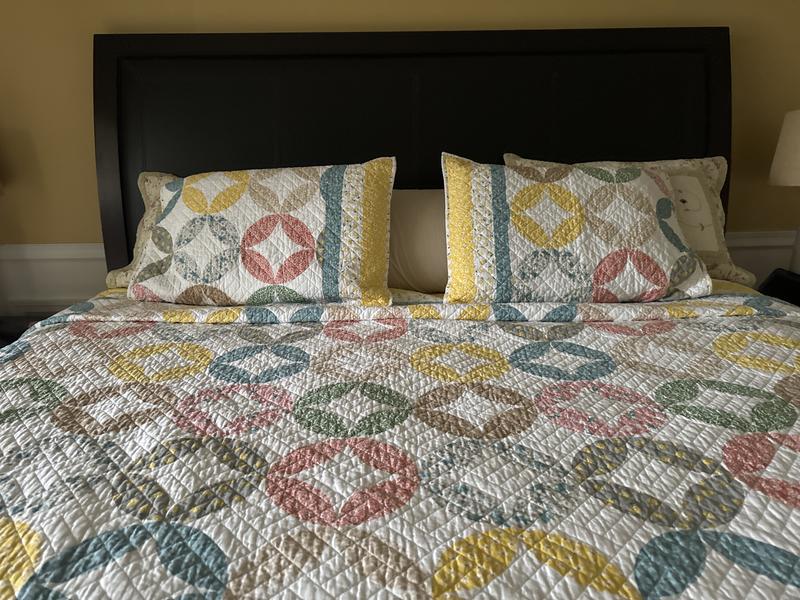 Very pretty, although it's a printed quilt pattern and not actual quilted pieces, and comfortable, sized well.