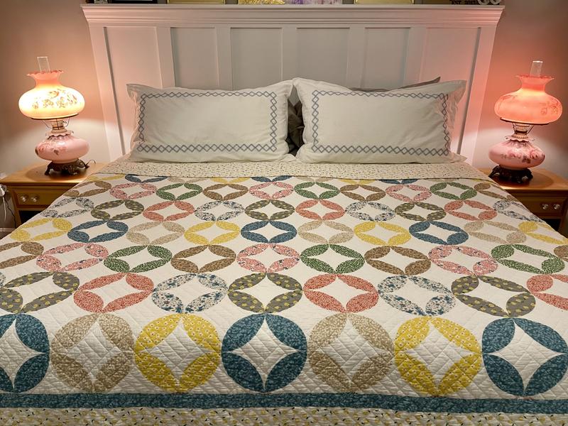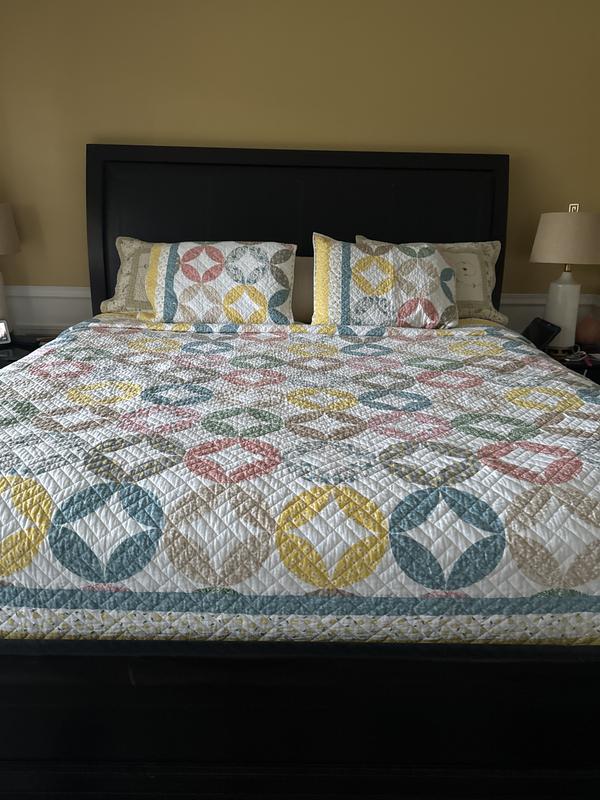 This is such a beautiful and colorful quilt that really brightens up the room!! All cotton and soft!!