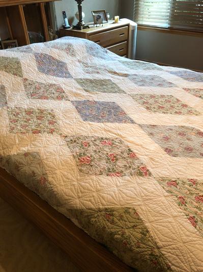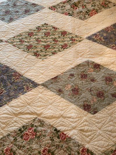 This is a beautiful quilt - great pattern and colors. It is stitched and finished with excellent quality.