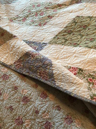If you love flowers this will be a favorite. l thought the quilt would have been thicker it's kind of thin but very soft and beautiful it fits my queen bed perfect.
