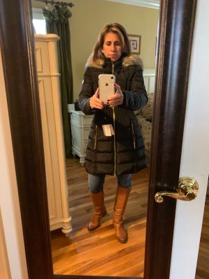 I bought this coat for my daughter but it was too snug. I then tried it on and it fit. Not sure that I would have picked the coat for myself initially as I prefer longer winter coats - however, it is warm and comfortable. The cinching in the waist also offers a nice feature. I can't wait to wear it with heels to a semi-dressy event.