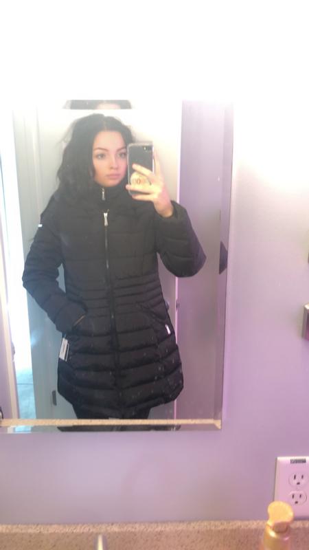 Really nice jacket, my mom has one in burgundy and was so happy with it I bought one in black. Great look, super warm (we've tested this in Canada, in late December!) and it's very flattering.