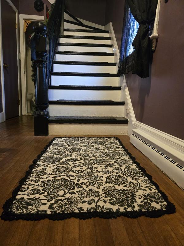 This cute Laura Ashley machine-washable cotton accent rug has been such a lovely addition to my kitchen. The beautiful floral design instantly adds warmth and color, and the delicate crochet border gives it a nice handcrafted touch. I keep it it placed right in front of my sink, and it’s surprisingly comfortable to stand on while cooking or washing dishes. The skid-resistant backing is a huge plus - it keeps the rug securely in place, even with constant foot traffic. Being machine washable I can clean it whenever it needs a refresh, and the best part is the color and the crochet edging looks great even after several wash cycles.