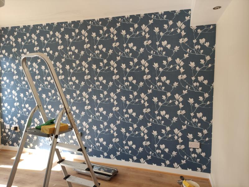 I like to buy Laura Ashley wall paper and this one didn't disappoint. I had seen it at a higher price in several stores so was very pleased to see the discount offered. I chose the Magnolia grove for my bedroom the background beige contrasted well with my sage green painted walls and the lovely white magnolia gives a fresh but classy look. It is a super quality thick paper and It was so easy to hang, I used a ready mixed heavy duty paste and I was able to slide and manouver it around awkward edges without any tears. The pattern is easy to match and there is very little wastage. I am very pleased with the finished result