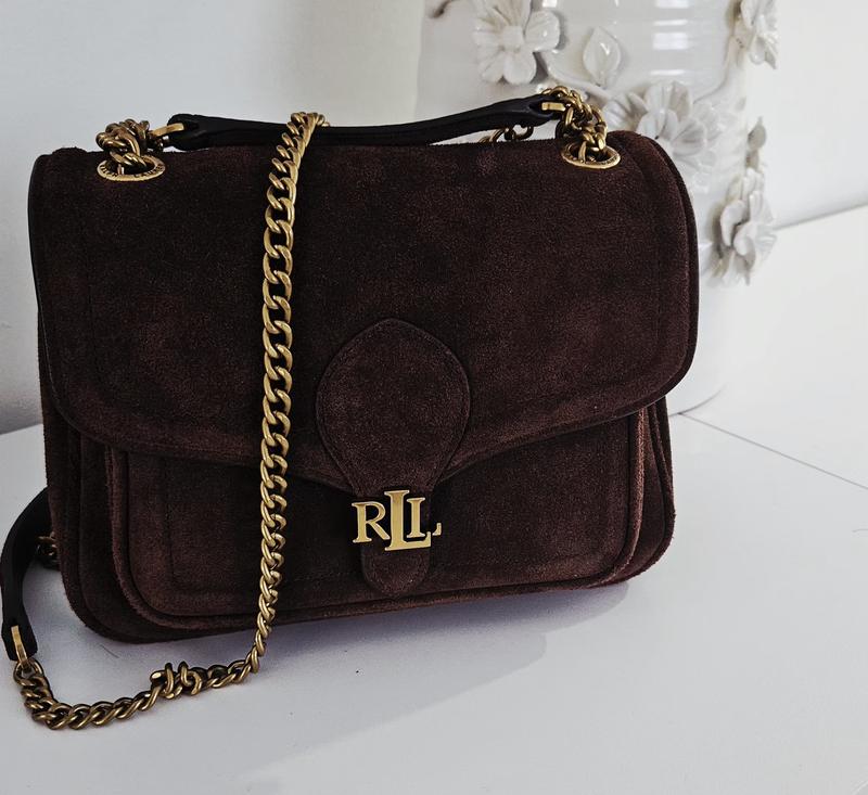 Crafted with velvety soft suede, the small Bradley bag from Lauren Ralph Lauren is designed with a convertible chain strap, allowing you to wear this style as a shoulder bag or crossbody.