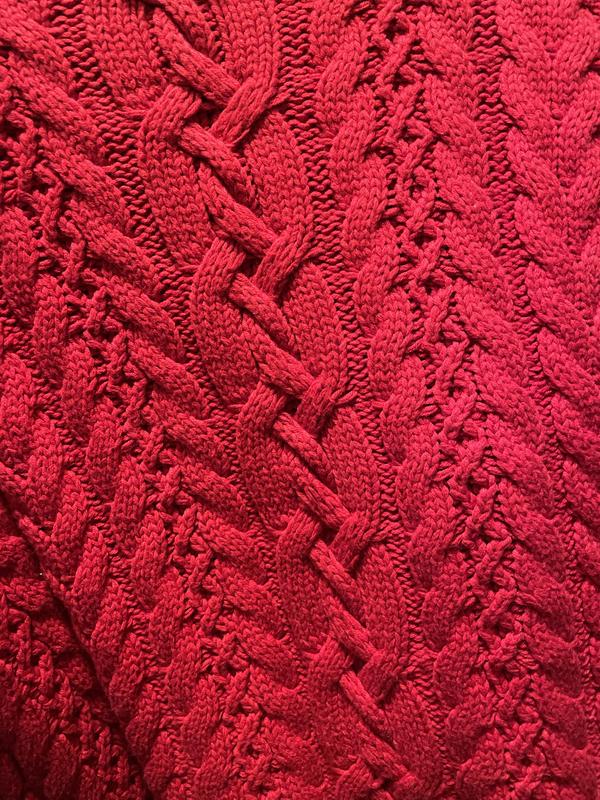 This sweater is a total winner. Soft, thick cotton, saturated lipstick red color. I have the black too