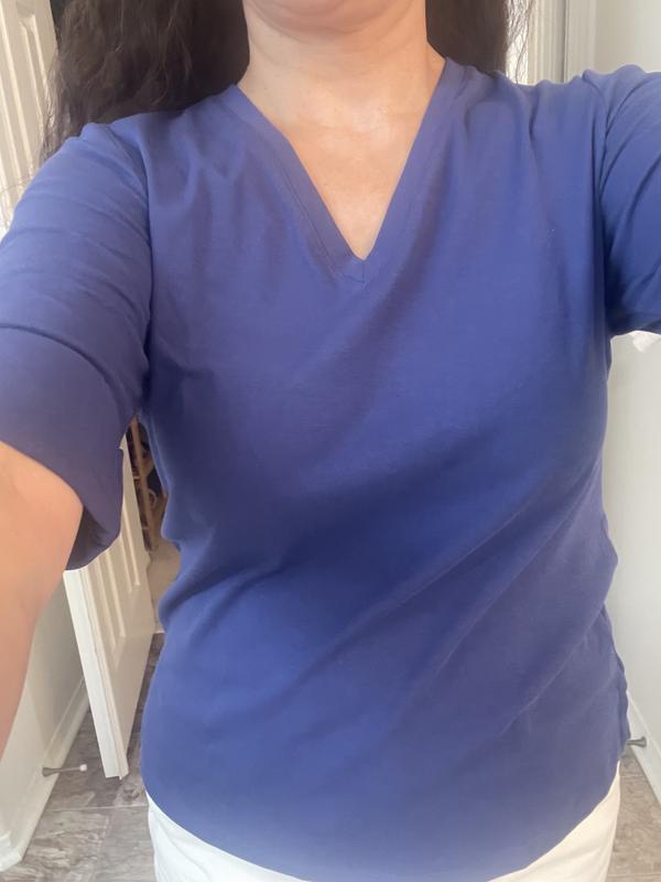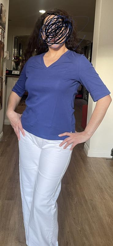 It’s nice casual top, I ordered a size up because I don’t like slim style. Charter Blue is not like the pictures (color looks as if been washed and faded).I not sure about this color.