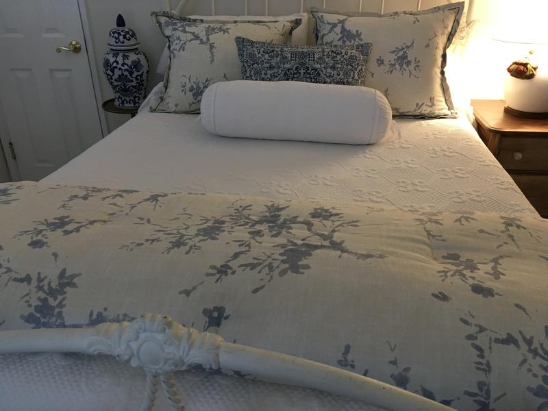 I wanted to refresh my bedroom with a light weight comforter for the summer. The Eva Cream comforter is very pretty and the quality is decent. (It does wrinkle but I used a cool iron on in and it helped.) With better quality sets you can usually get accessories to match so I did have to improvise a little. (I am still searching for a better neck roll pillow) I purchased this bedding for my master but to me it's more for a guest room. The weight is perfect for the hotter months.