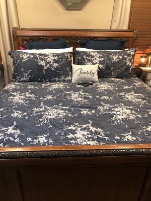 I really like the weight and design of the comforter. However, it is really really wrinkled! I was surprised that it’s reversible which is a nice feature.