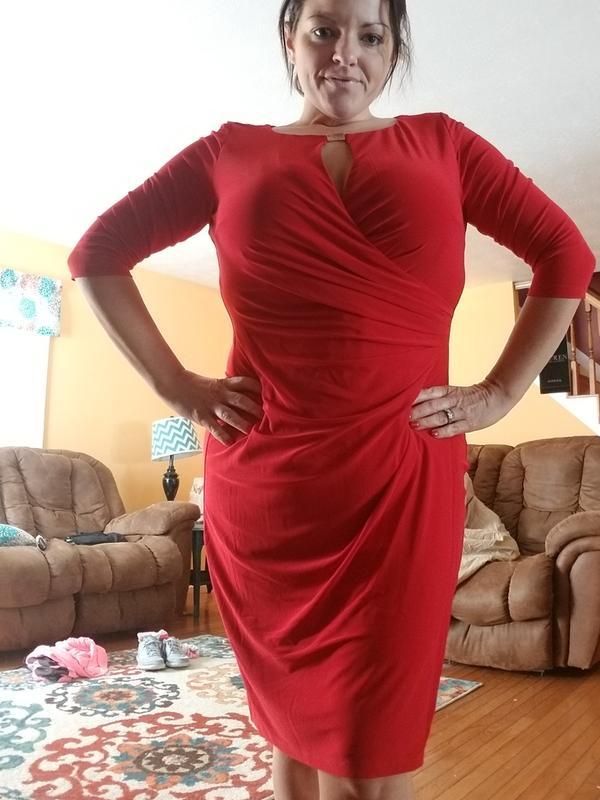 This is such a lovely dress because it fits so perfectly and gives you such a nice shape. It's very classy and elegant and at the same time casual. Perfect to be worn for work or to go out to dinner at night. I love it! I'm 5'2" and wear a size 6 or small.