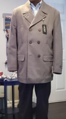 Peacoat was as expected. It was packaged with care which included hanger and protective plastic. Coat is made of wool and appears to be well made and doesn't appear that it will pill after wearing it.