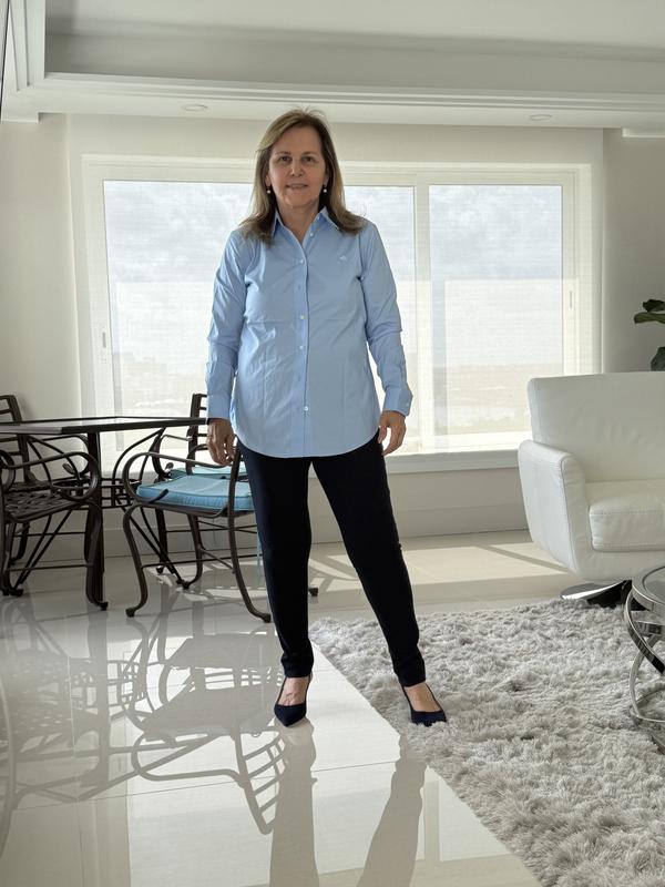 Lovely shirt, versatile good quality. I bought it in a medium, fits great, have it in white and light baby blue