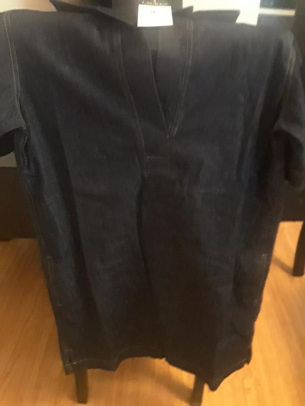 It’s pretty comfortable and unique and can work on top of another dress nicely as well. The fit is more boxy and not tight around the waist which I don’t mind that much. I like the way this dress looks over my soft boxy fitting t shirt dresses as well to make them a little more flattering looking. It’s just long enough that when I bend over you don’t get a show. If you order the small and have d cup breasts beware however because I’ve had it unravel the top buttons on their own without me moving that much. Maybe wear a tight sports bra