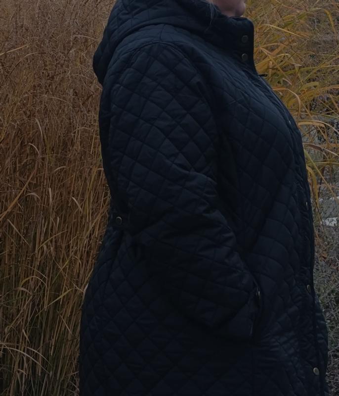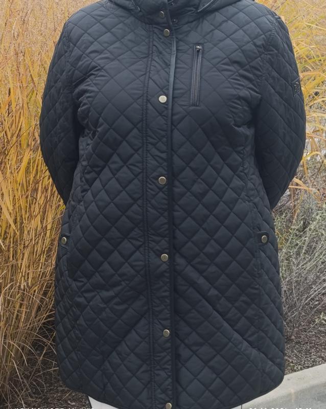 Plus Size Hooded Quilted Faux-Suede-Trim Coat