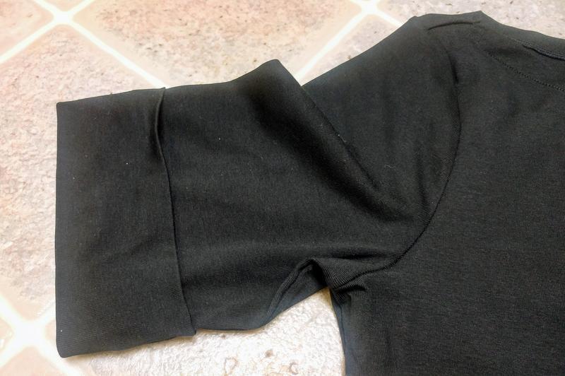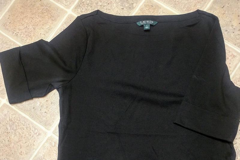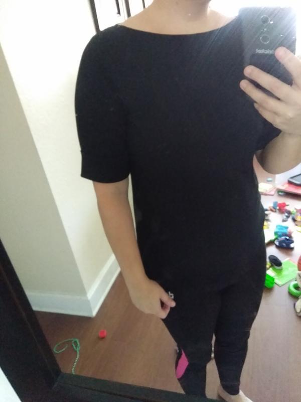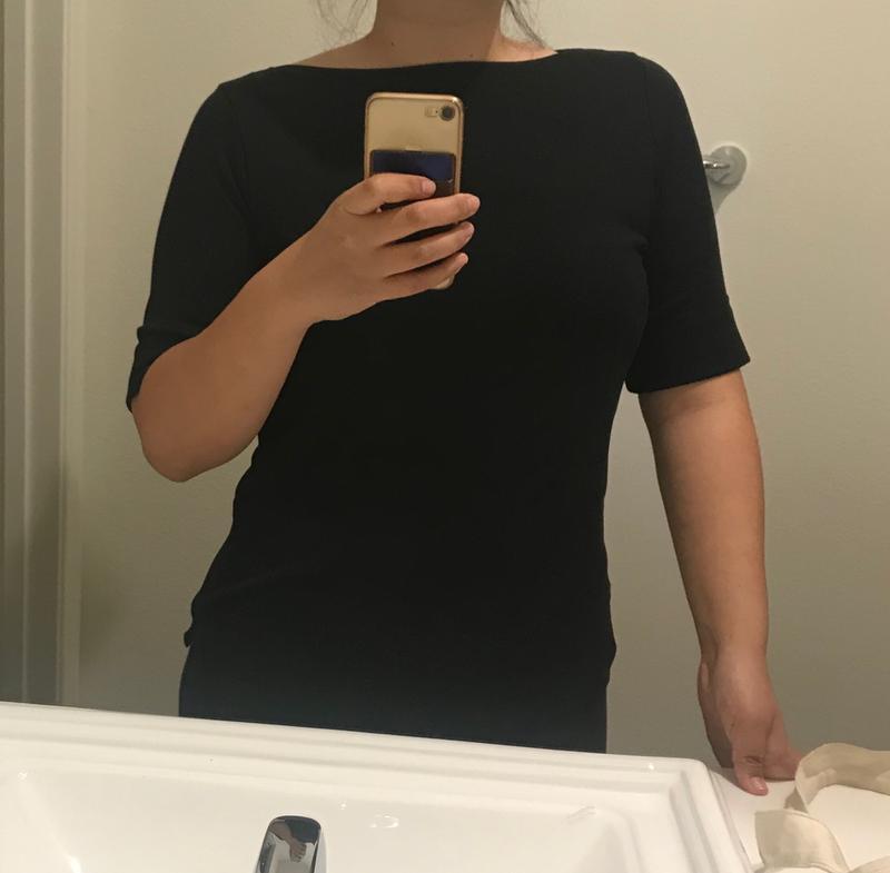 Love this top. Elbow length sleeves, boatneck, fits well, washes well.